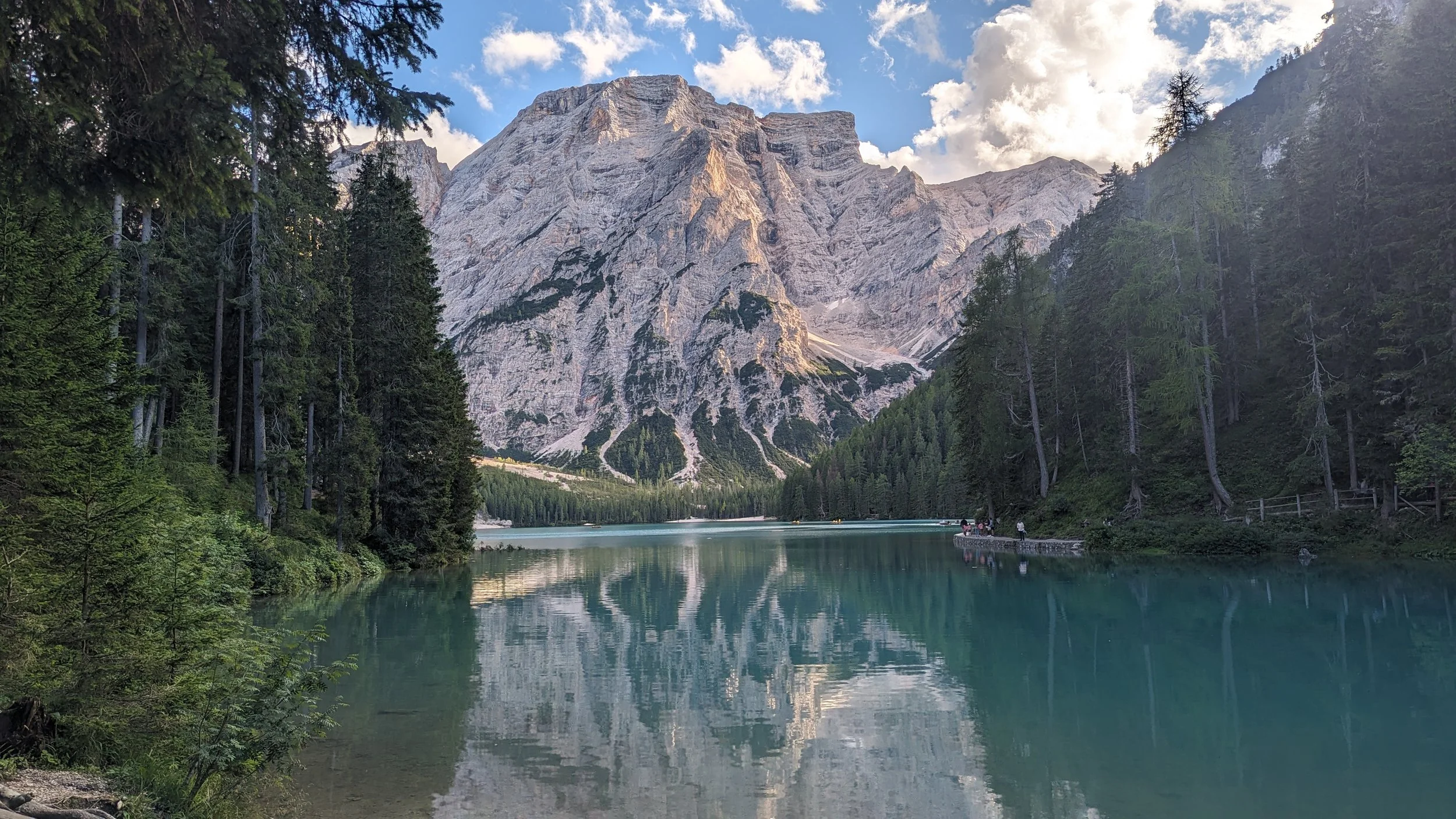We had about an hour drive to our destination for the day which was Lago di Braies which is, a lot of vowels. It was immediately evident that this glacial lake is absolutely stunning. Maybe even more so than Lake Louise (which is hard to beat!)